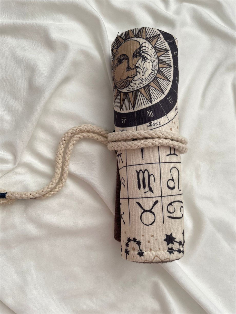 Ay ve Güneş Zodiac Baskılı Rulo Kalemlik (RuloKalemlik4)